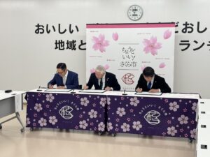 この協定は、さくら市と学校給食の調理担当ジーエスエフ様と配送担当の弊社と連携して災害が発生している地域の住民に温かい食事をお届けするという内容です。